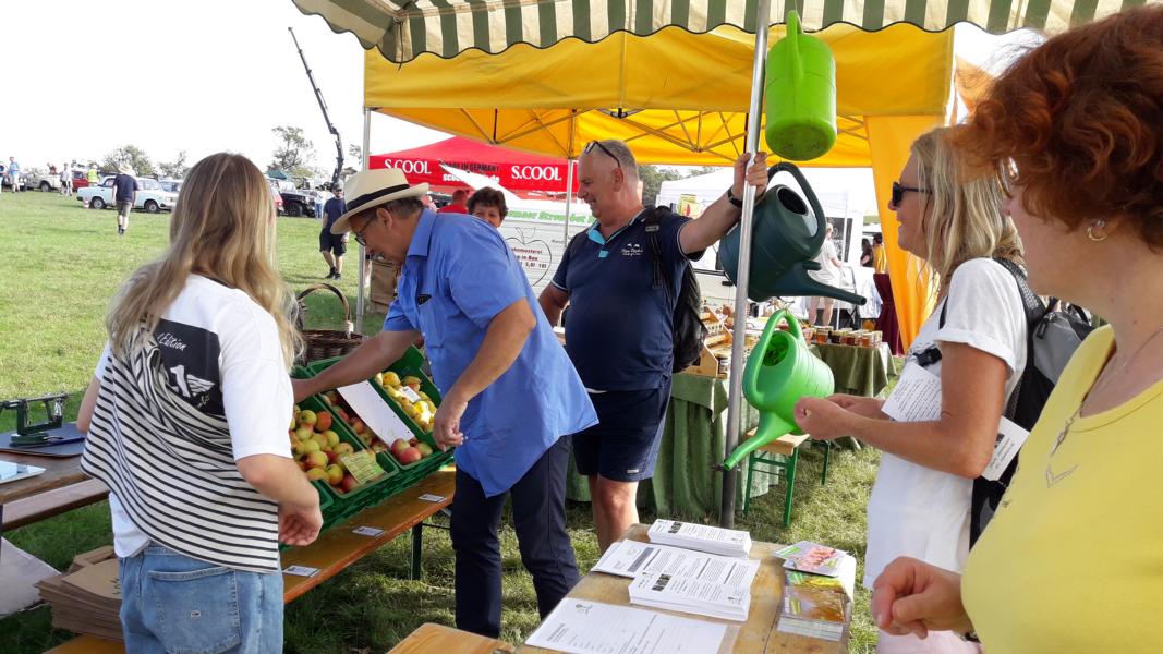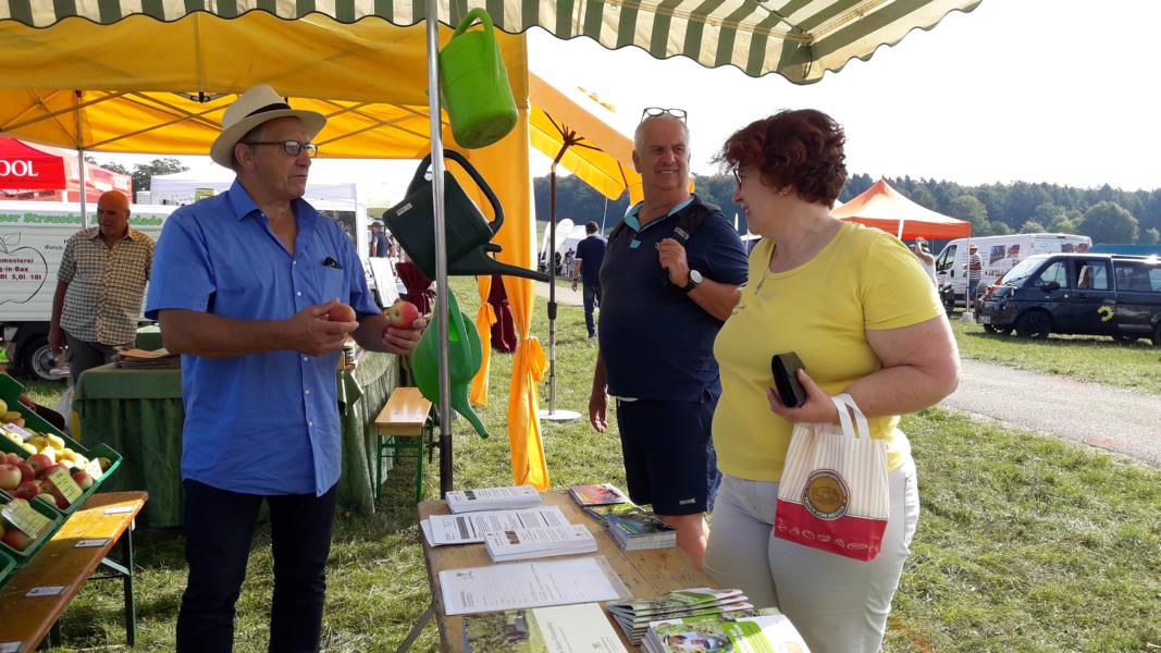 Der OGV hatte einen Stand beim Familientag des LSV auf dem Rossfeld am 10. September. Bei herrlichem Wetter konnten sich die Besucher des Regionalmarktes über den OGV und fachliche Themen informieren und mit Vereinsmitgliedern sowie dem 1. Vorstand Jörg Seitz ins Gespräch kommen, während die Kleinen an Malsachen und Apfelschälmaschinen Gefallen fanden.