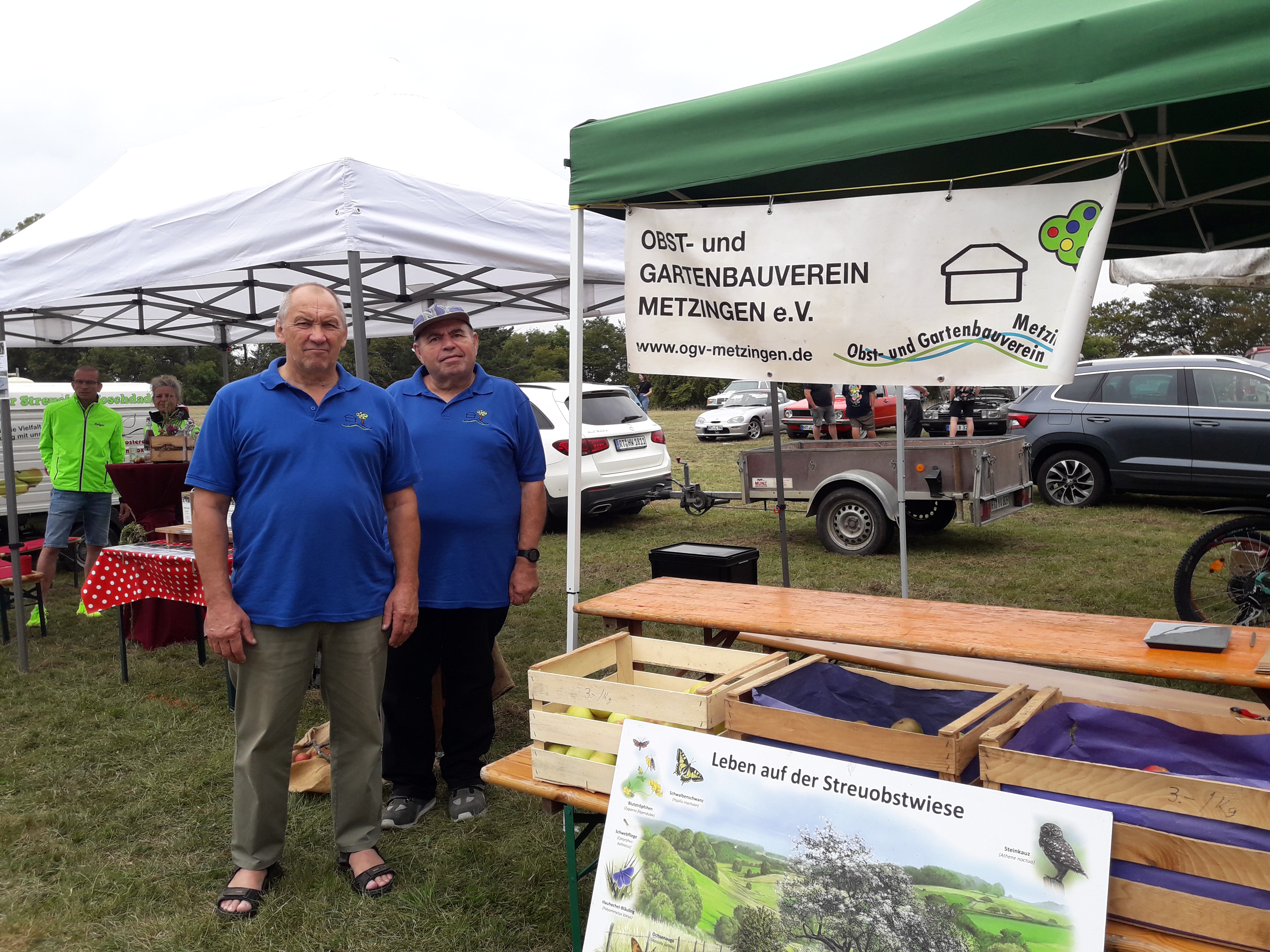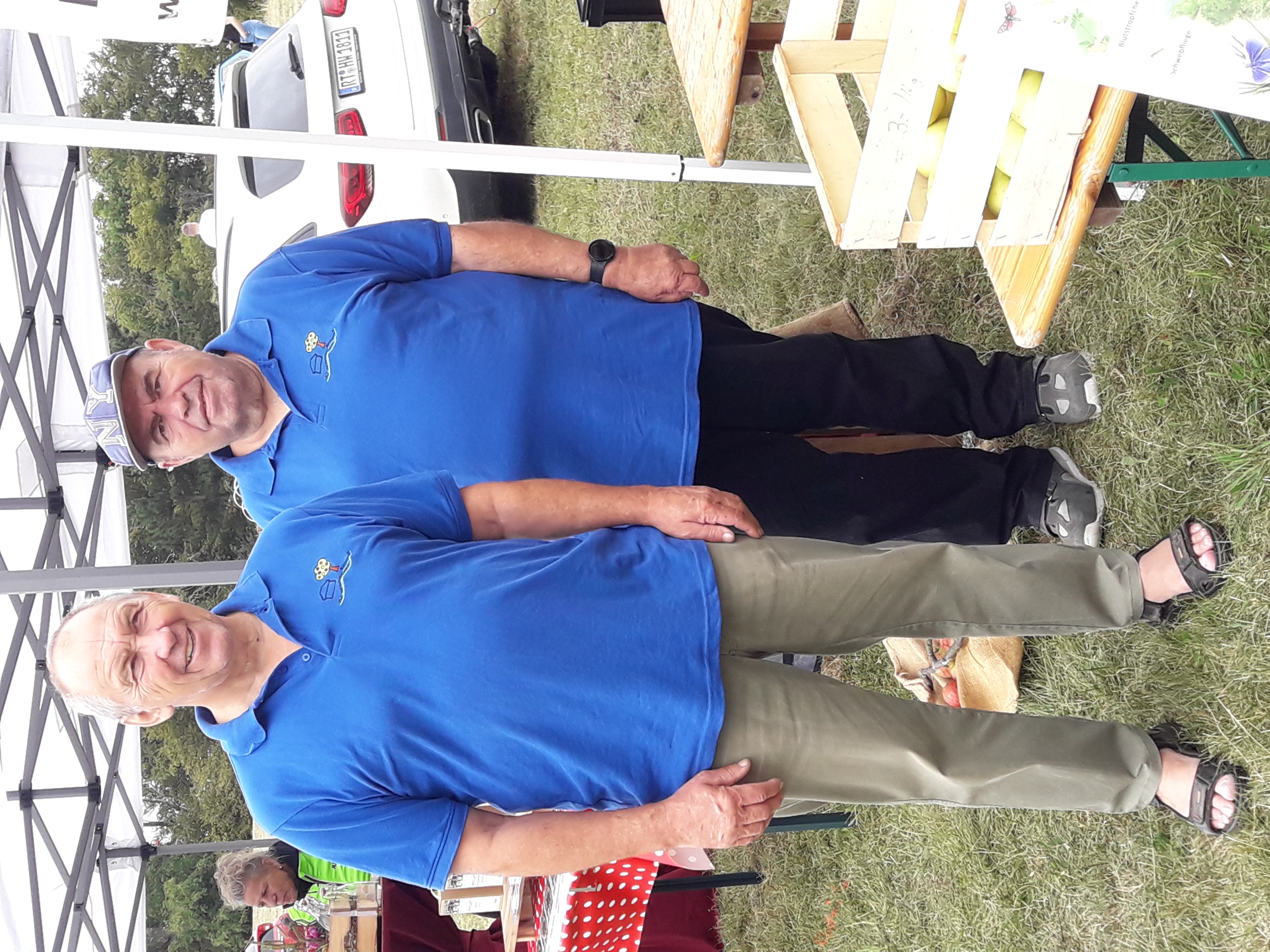Der 1. Vorsitzende des OGV Jörg Seitz und Bernd A. zeigen Vereinspräsenz beim Familientag des LSV auf dem Rossfeld